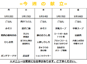 1月3週の献立|札幌中央区の就労継続支援B型事業所、パソコン就労継続支援ならハッピーラボ
