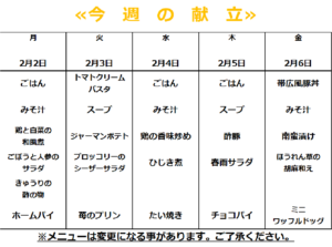2月2週の献立|札幌中央区の就労継続支援B型事業所、パソコン就労継続支援ならハッピーラボ