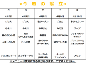 4月2週の献立|札幌中央区の就労継続支援B型事業所、パソコン就労継続支援ならハッピーラボ